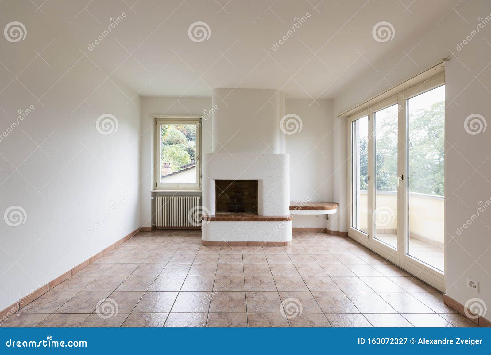 Fireplace Windows - Empty Room With Fireplace And Windows With A View Stock Image Image Of Front House 163072327