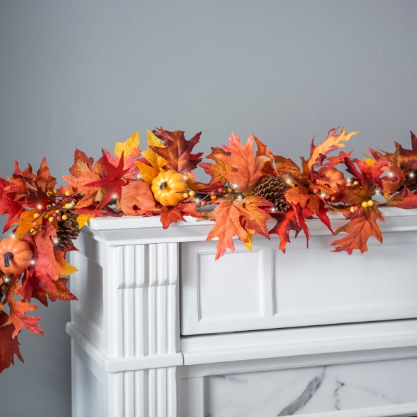 Lighted Garland For Fireplace Mantel - Pre Lit Maple Leaf Garland 6 Ft Kirklands