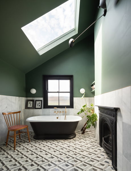 Victorian Bathroom Fireplace - Bathroom Under A Skylight In A Renovated Victorian House With Graphic Tile Floor A Fireplace And A Freestanding Tub Hackney East London Uk 9gag