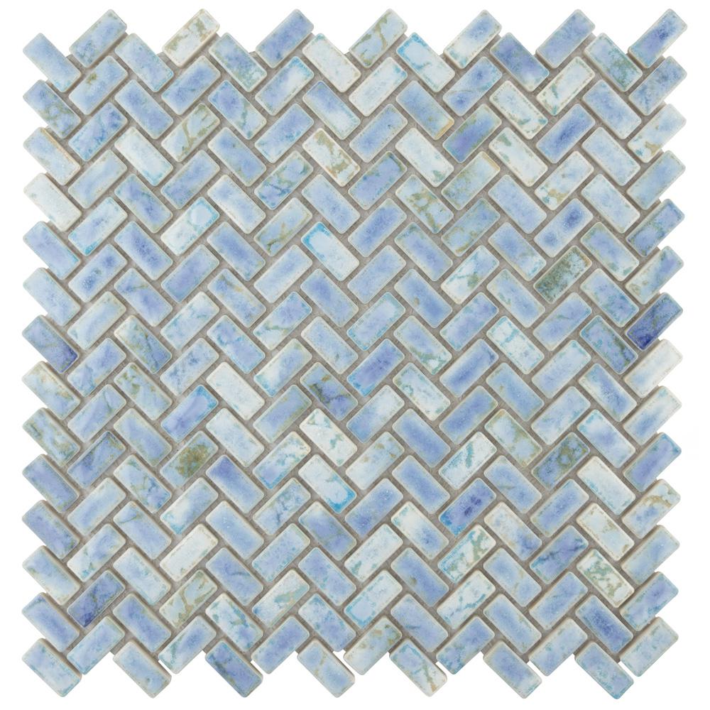 Blue Mosaic Tile Fireplace - Herringbone Shower Blue Mosaic Tile Tile The Home Depot