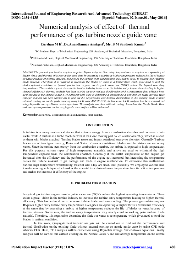Gas Turbine Nozzle Guide Vane - Pdf Numerical Analysis Of Effect Of Thermal Performance Of Gas Turbine Nozzle Guide Vane Rama Prasad Academia Edu