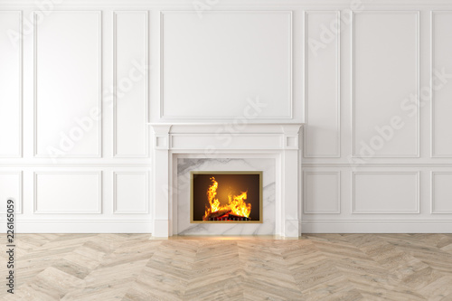 Fireplace Panel Wall - Modern Classic White Interior With Fireplace Wall Panels Wooden Floor 3d Render Illustration Mock Up Buy This Stock Illustration And Explore Similar Illustrations At Adobe Stock Adobe Stock