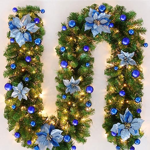 Blue Fireplace Garland - Amazon Com Maipuxuan Christmas Encrypted Rattan 2 7 M Artificial Flower Rattan Garland Tree Hanging Fireplace Home Garden Decor Ornaments With Light Blue Home Kitchen