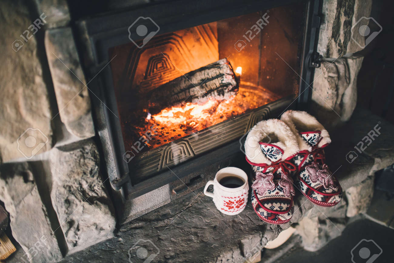 Warm Cozy Fireplace Images - Warm Cozy Fireplace With Real Wood Burning In It Magical Atmosphere Cup Of Hot Drink And