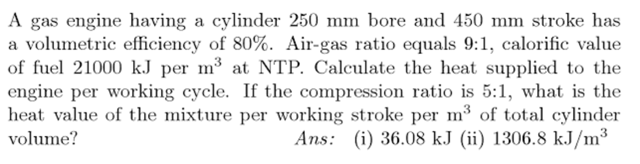 Having A Gas - A Gas Engine Having A Cylinder 250 Mm Bore And 450 Chegg Com