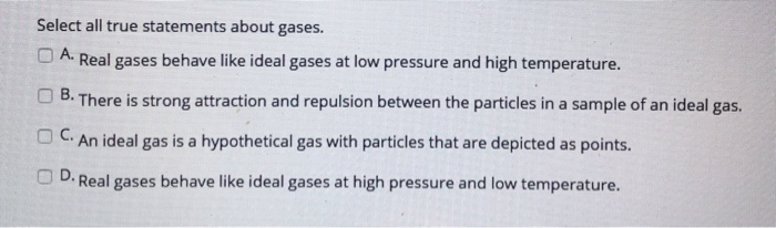 All About Gases - Solved Select All True Statements About Gases A Real Ga Chegg Com
