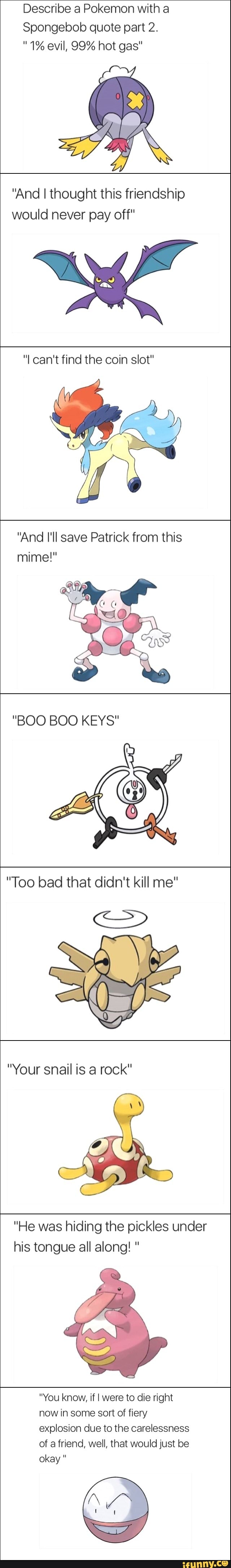 99 Hot Gas - Describe A Pokemon With A Spongebob Quote Part 2 1 Evil 99 Hot Gas And I Thought This Friendship Would Never Pay Off I Can T Find The Coin Slot Ifunny