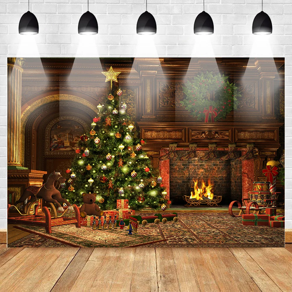Box Fireplace Christmas - Christmas Photo Backdrop Home Party Decoration Christmas Background Fireplace Christmas Tree And Box Xmas Party Photo Booth Background Aliexpress
