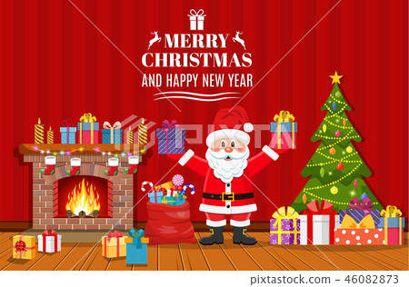 Box Fireplace Christmas - Santa Claus Holding Gift Box Stock Illustration 46082873 Pixta