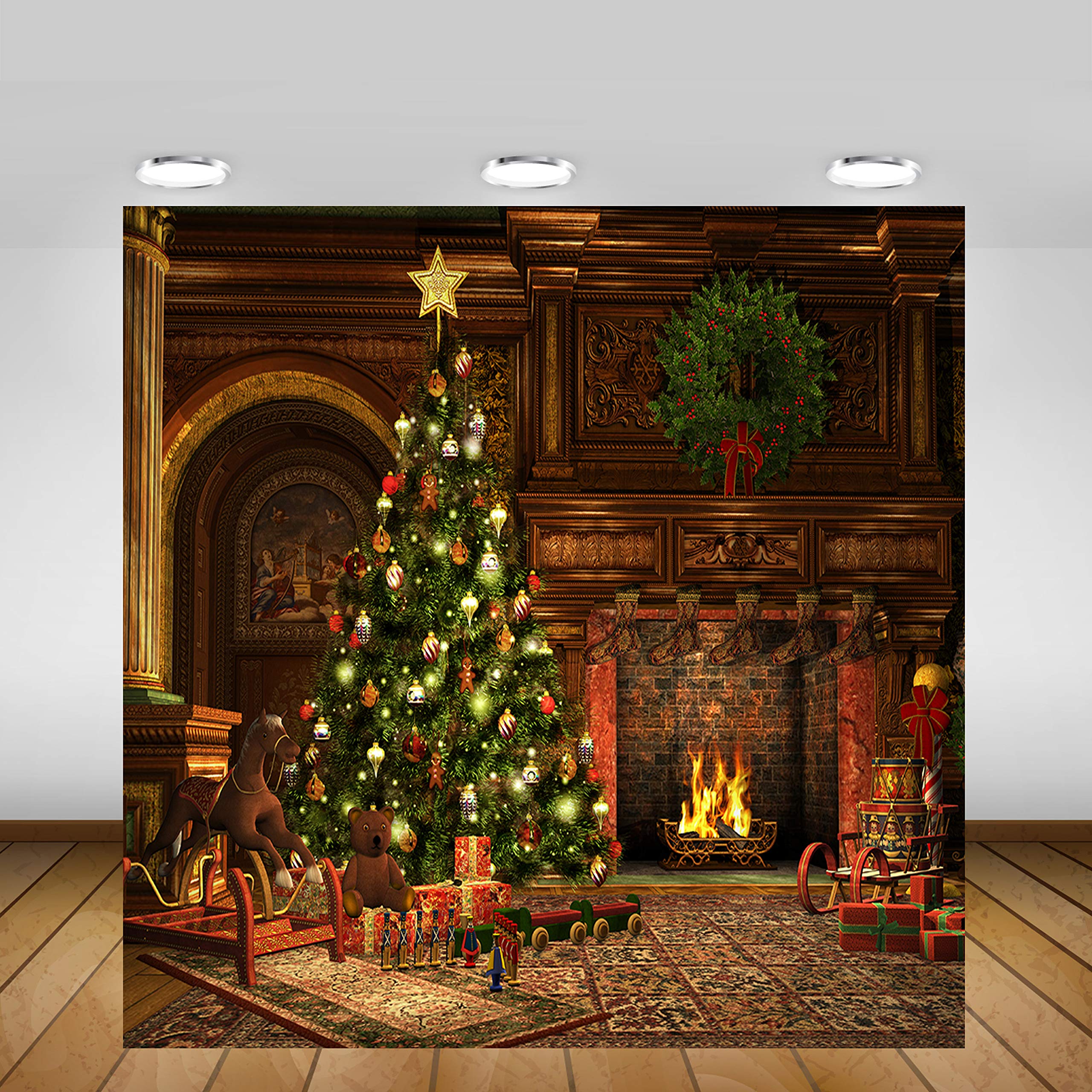 Box Fireplace Christmas - Mehofoto Christmas Photo Backdrop 8x8ft Home Party Decoration Christmas Background Fireplace Christmas Tree And Box Xmas Party Photo Booth Backdrops Buy Online In Japan At Desertcart