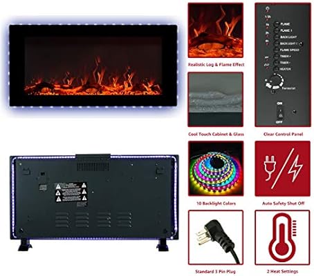 Febo Flame Electric Fireplace 42 Inch - Amazon Com R W Flame 36 Inch Recessed And Wall Mounted Electric Fireplace Ultra Thin Ad Low Noise Fit For 2 X 4 And 2 X 6 Stud Remote Control With Timer Touch Screen Adjustable Flame Color