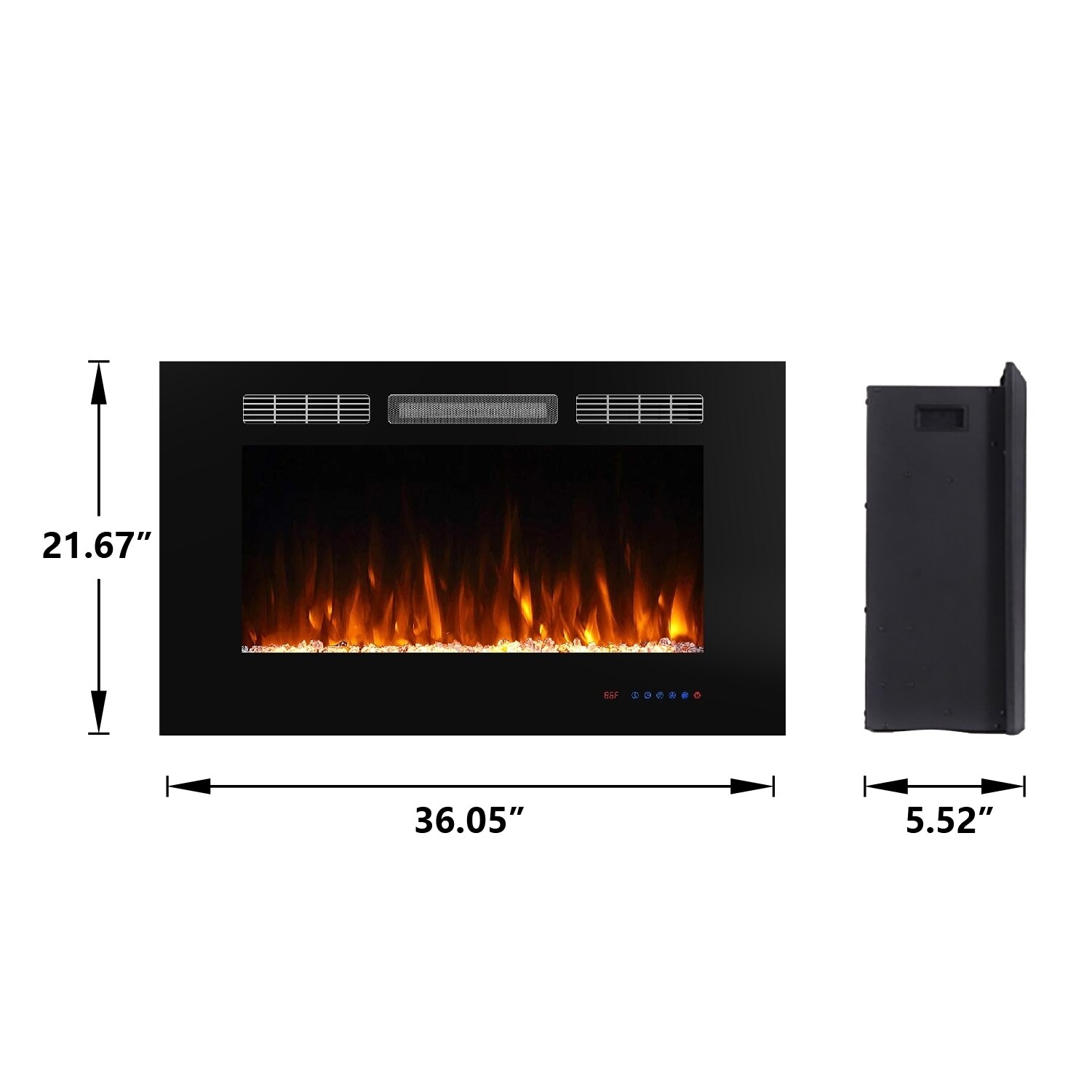36 Inch Electric Fireplace Insert - 35 Bliss Built In Touch Screen Multi Color Wall Mounted Electric Fireplace