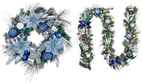 Blue And Silver Fireplace Garland - Amazon Com Christmas Wreath Garland Value Bundle 2pcs Winter Wishes Blue Silver Theme 24 Inch Christmas Wreath 9 Ft Christmas Garland For Outdoor Home Front Door Window Mantel Fireplace Tree Decorations Home