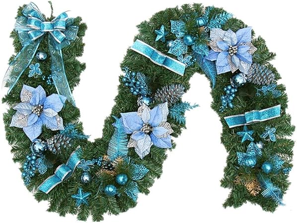 Blue And Silver Fireplace Garland - Jnseaol Garlands Wreaths 2m Stairs Fireplace Window Christmas Tree Office Mall Decoration Luxury Encryption Christmas Wreath Blue Amazon Co Uk Kitchen Home