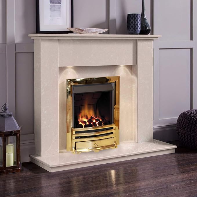 Gas Fireplace Design Modern - Cream Marble Stone Modern Wall Surround Gas Fireplace Suite Brass Inset Fire Downlights Amazon Co Uk Diy Tools